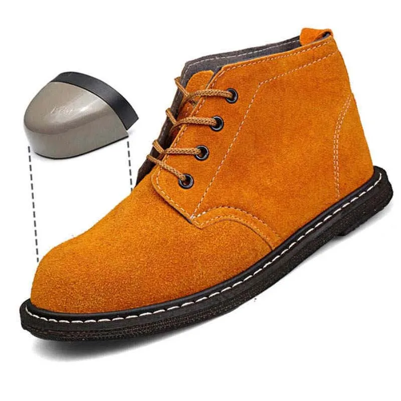 Large size men safety shoes Cowhide indestructible stab-resistant outdoor steel toe women's work bo