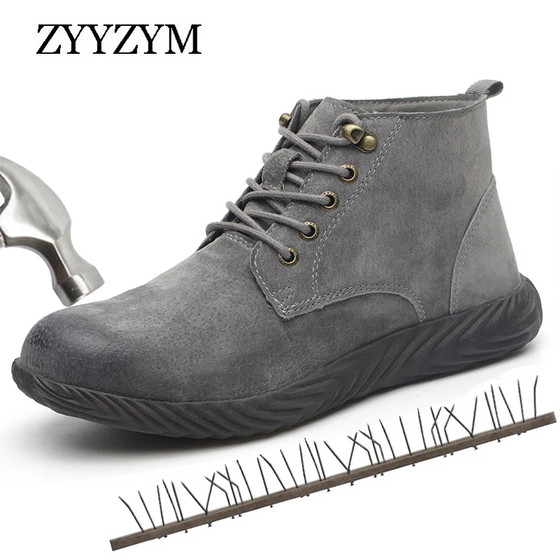 ORIGINAL ZYYZYM Steel Toe Shoes Men Safety Boots Pig Skin Industrial & Construction Men Work Safety Boots Pr