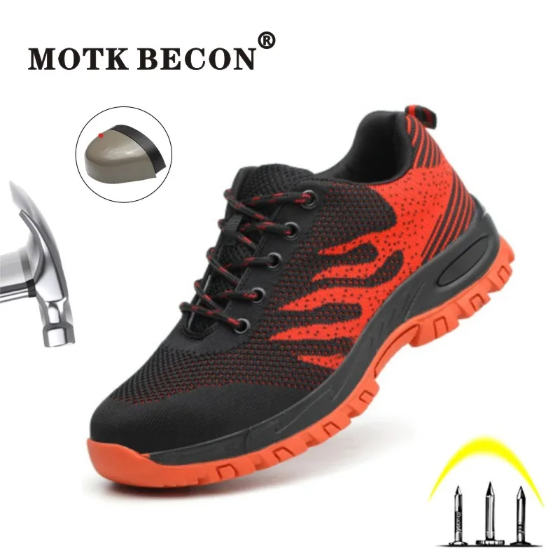 MOTK BECON Breathable Safety Shoes for Women Indestructible Steel Toe Cap Sneakers for Men Anti-Sma