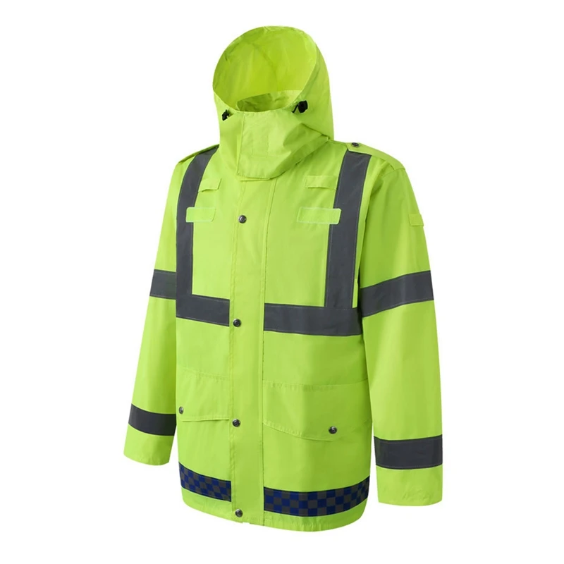 Reflective Rain Suit Long Sleeve Hooded Jacket Pants Kit High Visibility Windproof Waterproof Const