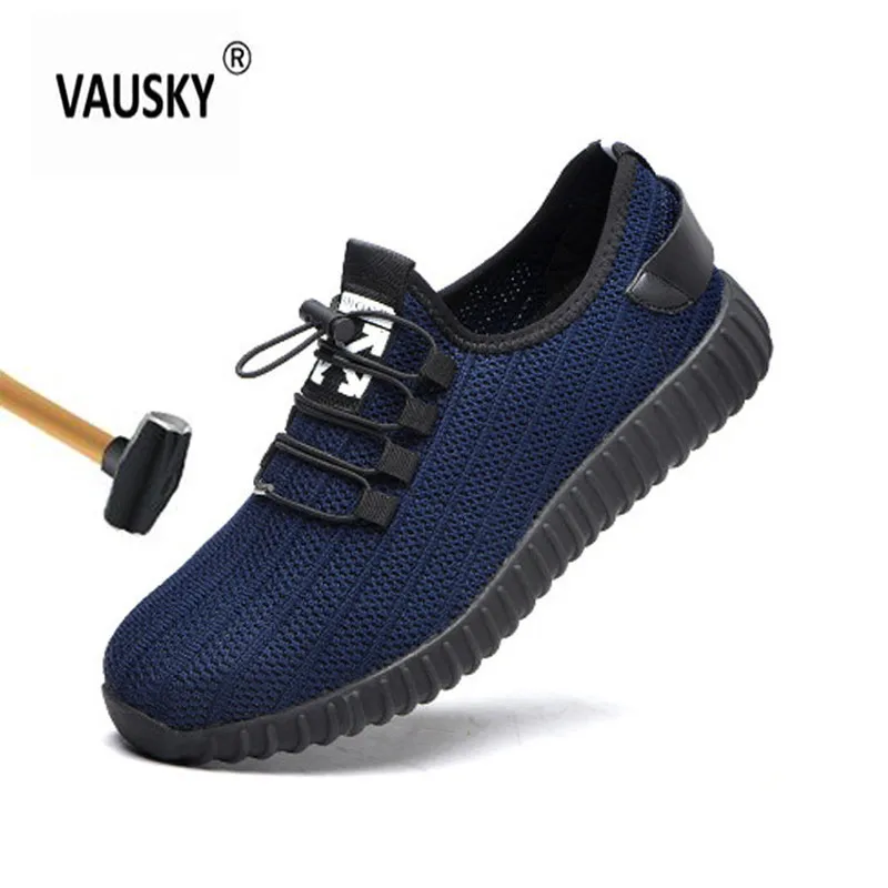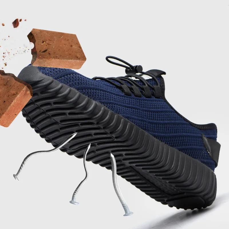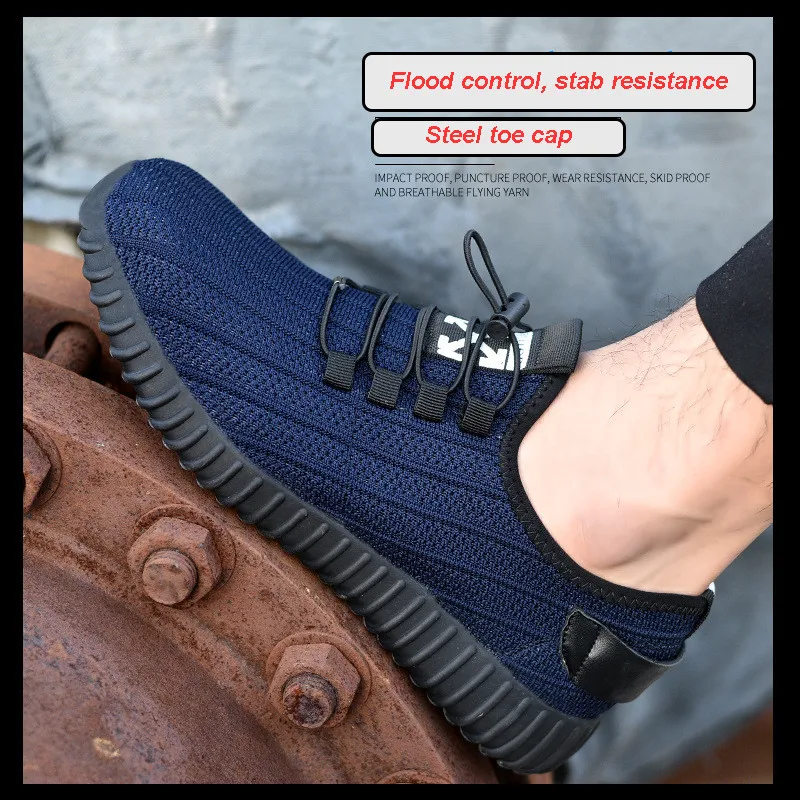 Mens breathable mesh steel toe cap work safety shoes Black blue anti-pierce platform construction s