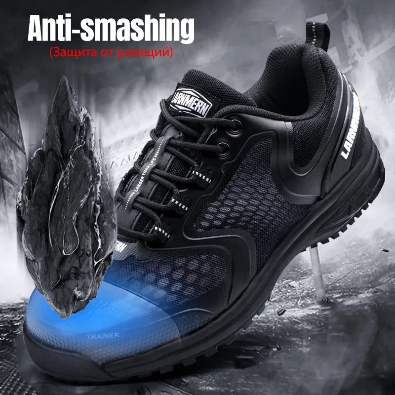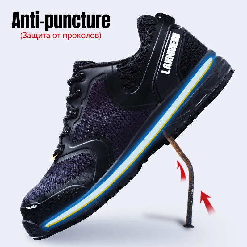 LARNMERN Men's Work Safety Shoes Steel Toe Breathable Anti-smashing Anti-puncture Non-slip Construc